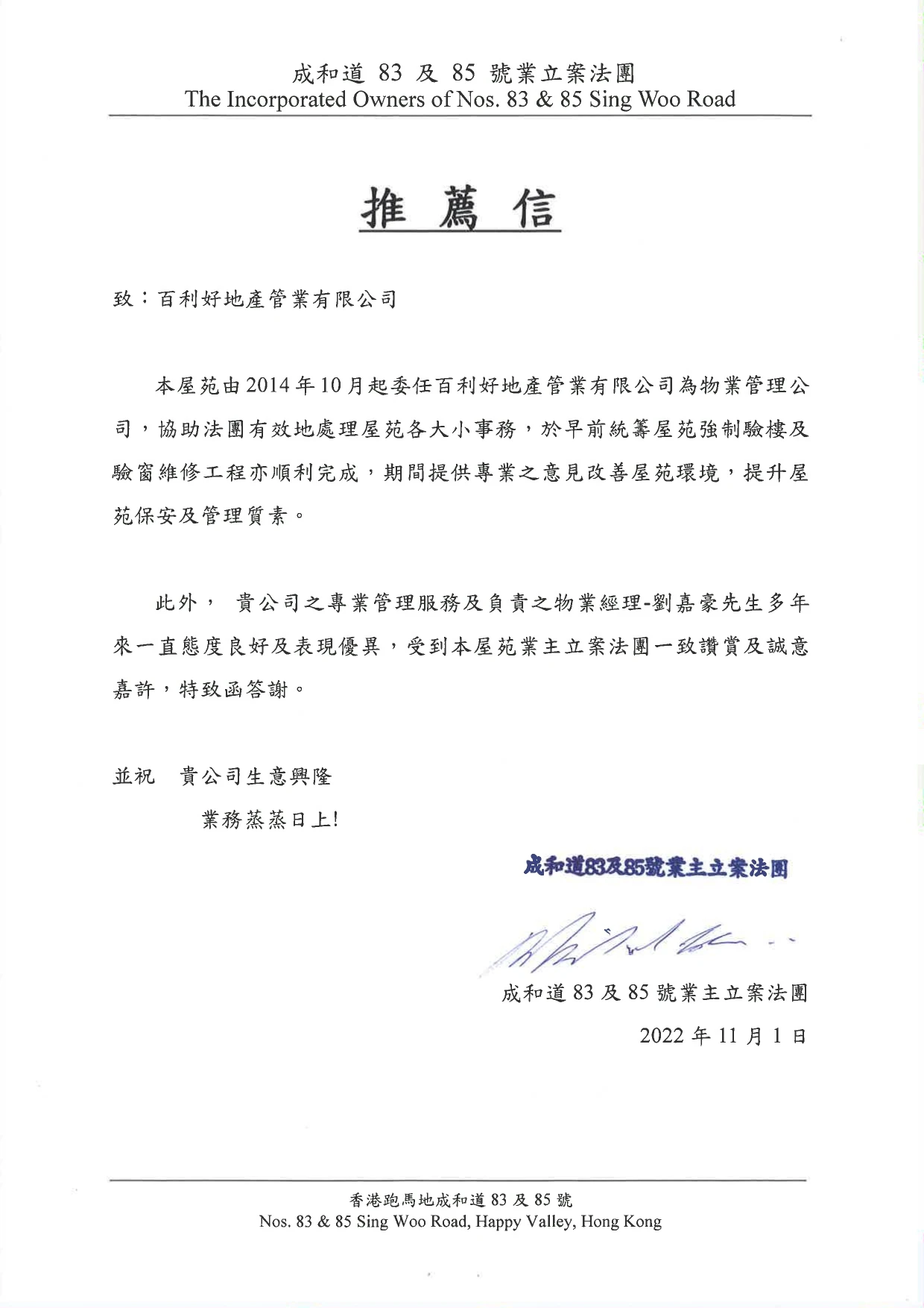 「百利好地產管業有限公司」成立於1983 年,超過40 逾年管理經驗,並於1992年成為「香港物業管理公司協會」成員,同時獲「香港房屋委員會」審核,登記成為居屋及公屋物業之代管公司。