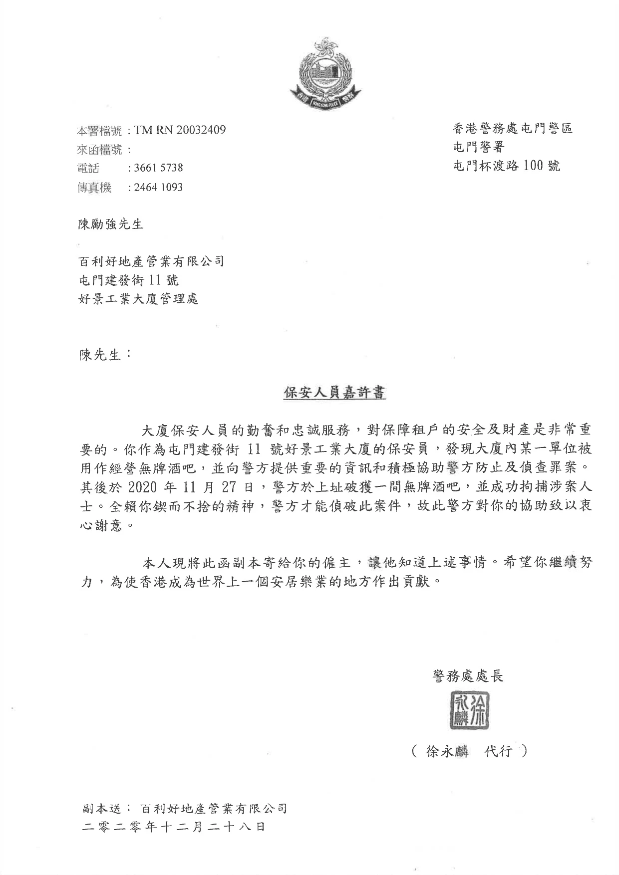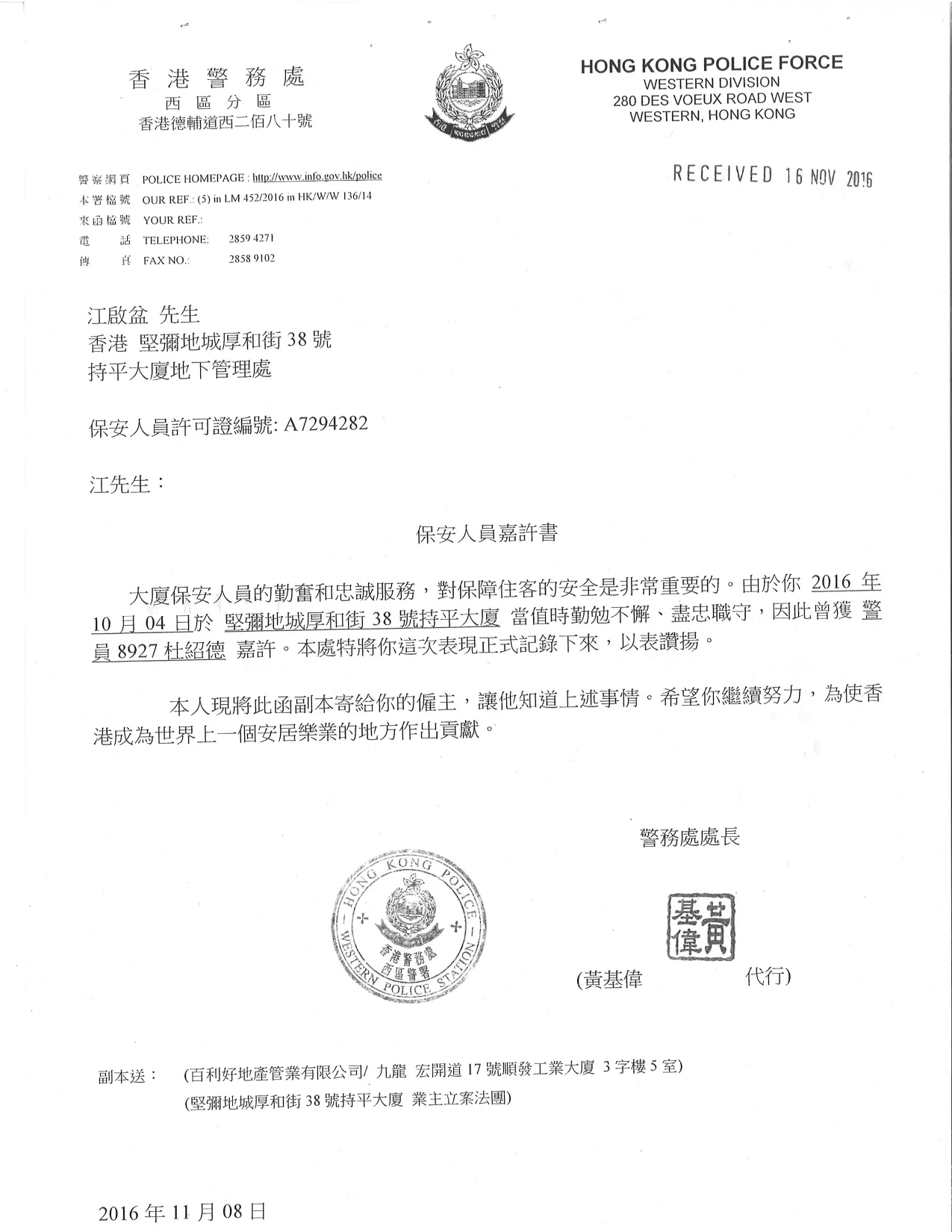 本公司現時全職員工超過300 人,寫字樓員工超過30 人,而物業管理部職員中,已有6 名職員持有物業管理人(第1 級)牌照及2 名持有物業管理人(第2級)牌照,5 名持有臨時物業管理人(第1 級)牌照,而本公司已於2022 年10 月正式取得物業管理監管局發出的物業管理公司牌照(C-405064)