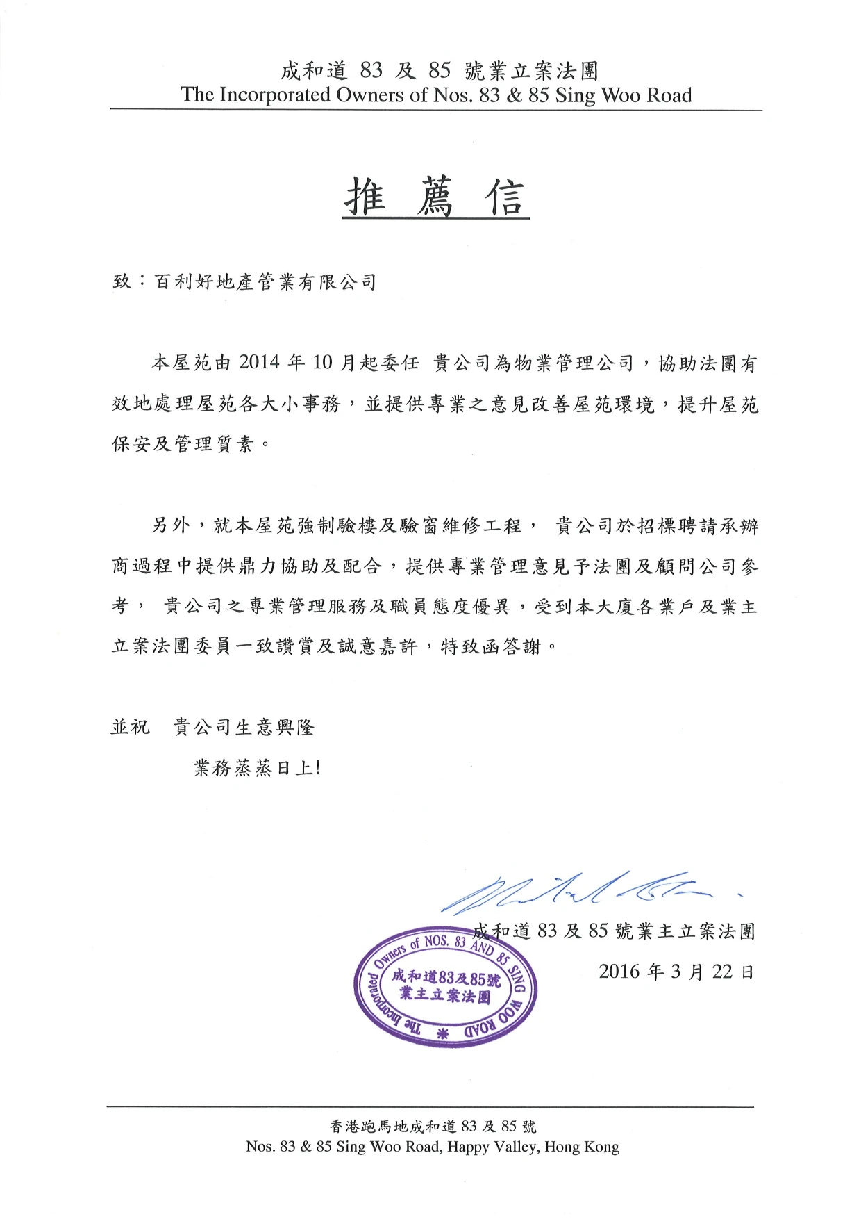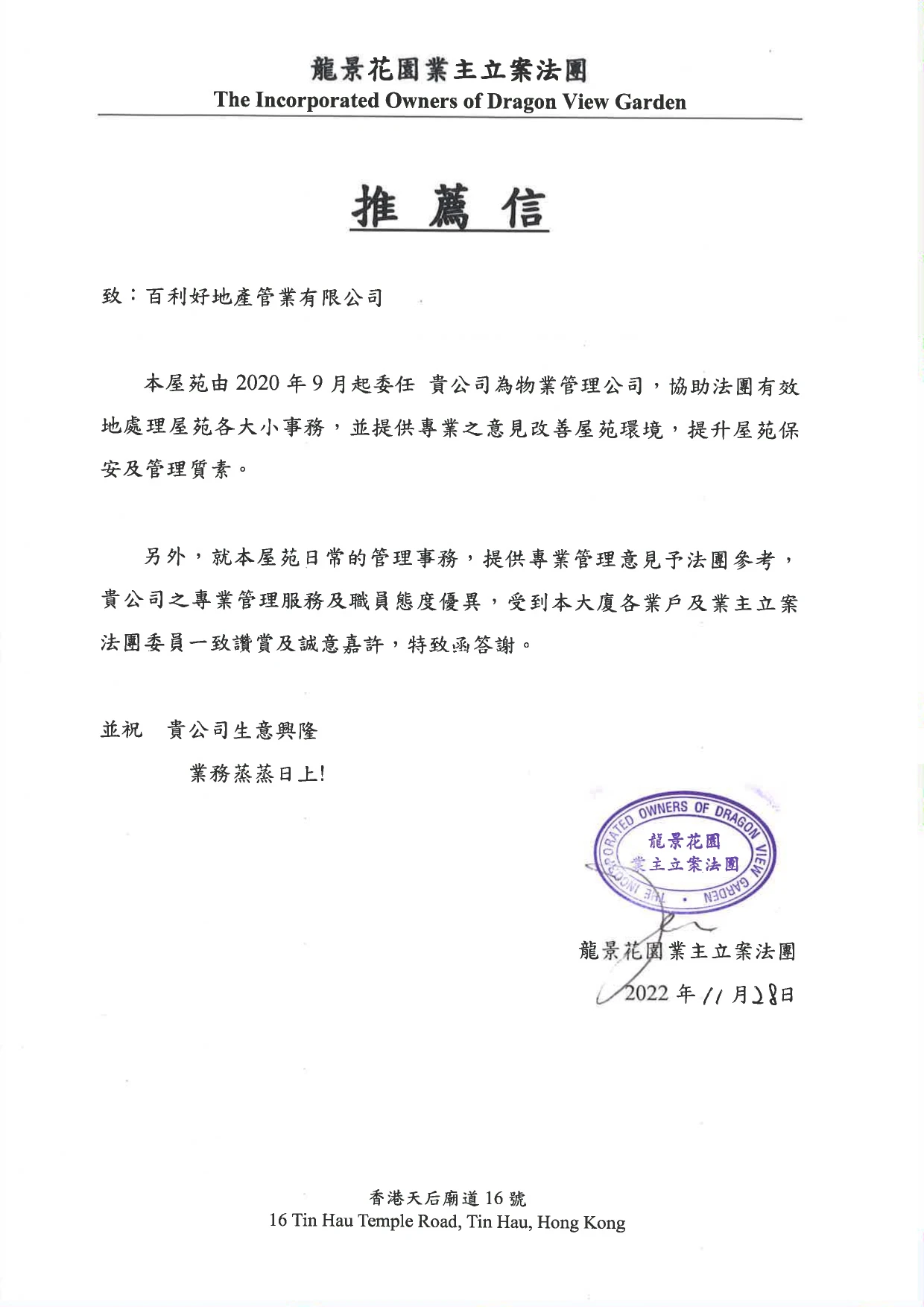 「百利好地產管業有限公司」成立於1983 年,超過40 逾年管理經驗,並於1992年成為「香港物業管理公司協會」成員,同時獲「香港房屋委員會」審核,登記成為居屋及公屋物業之代管公司。